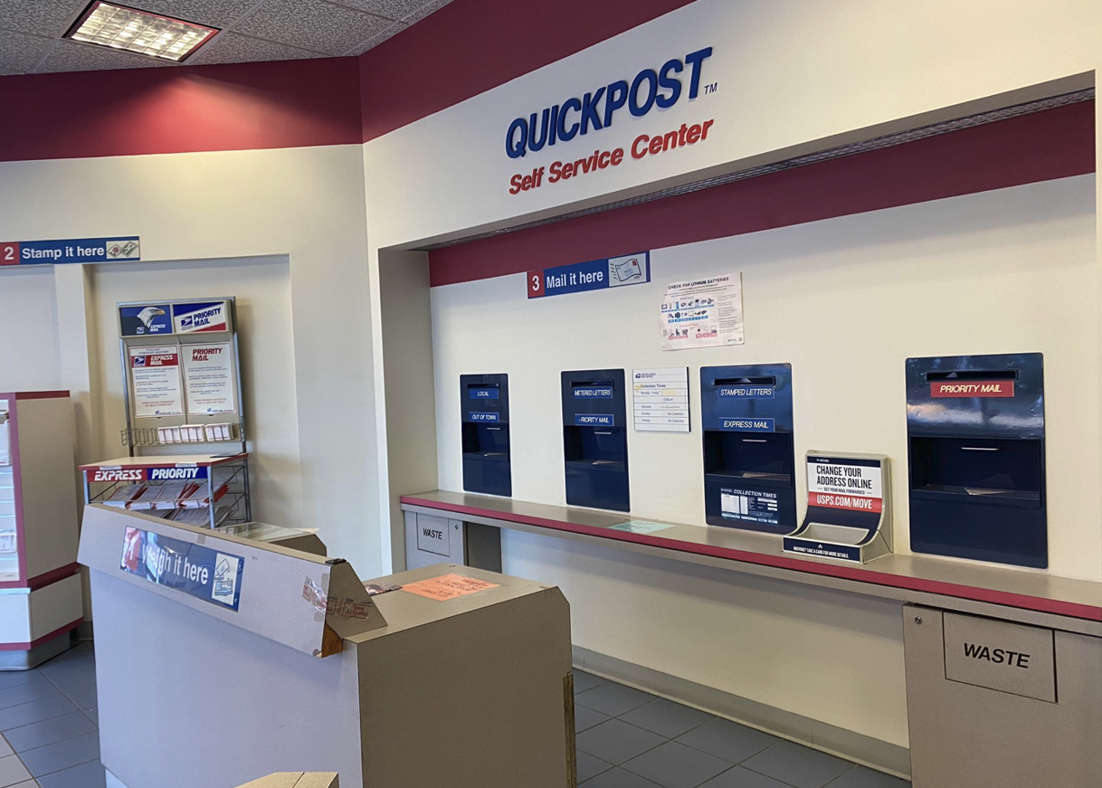 Post Office ๊ฐํ๊ณผ ์ฑ์กฐ๊ธฐ๊ฐ ๊ฑธ๋ ค์๋ ๋ฏธ๊ตญ์ ํํ ์ฐ์ฒด๊ตญ์ ๋ชจ์ต์ด์์